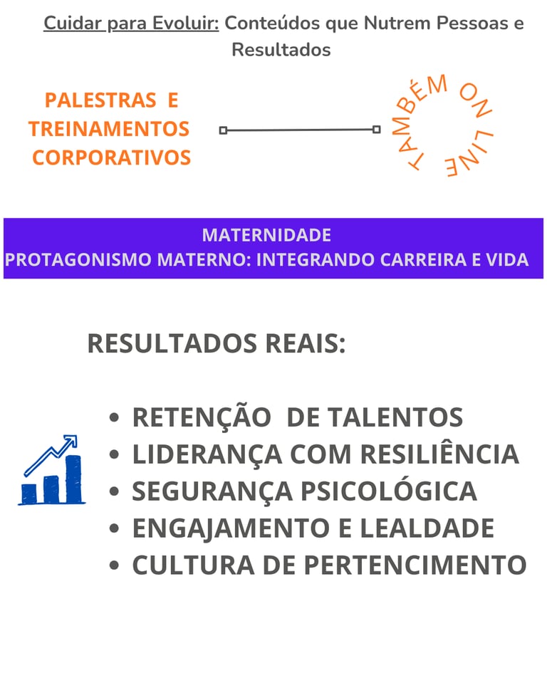 Treinamentos, palestras e mentorias que inspiram com quem já percorreu a caminhada corporativa !